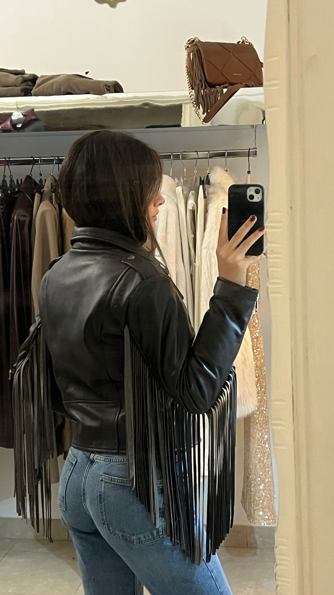 CHIODO IN ECOPELLE MARRONE CON FRANGE MOTEL